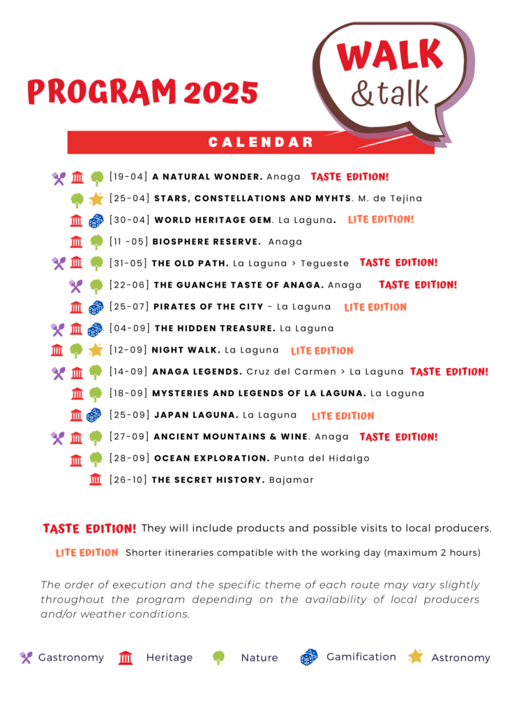 Welcome to the fifth edition of “Walk&Talk”: meet new people and practice languages while walking. A program made possible thanks to the Tourism Department of the City Council of La Laguna.