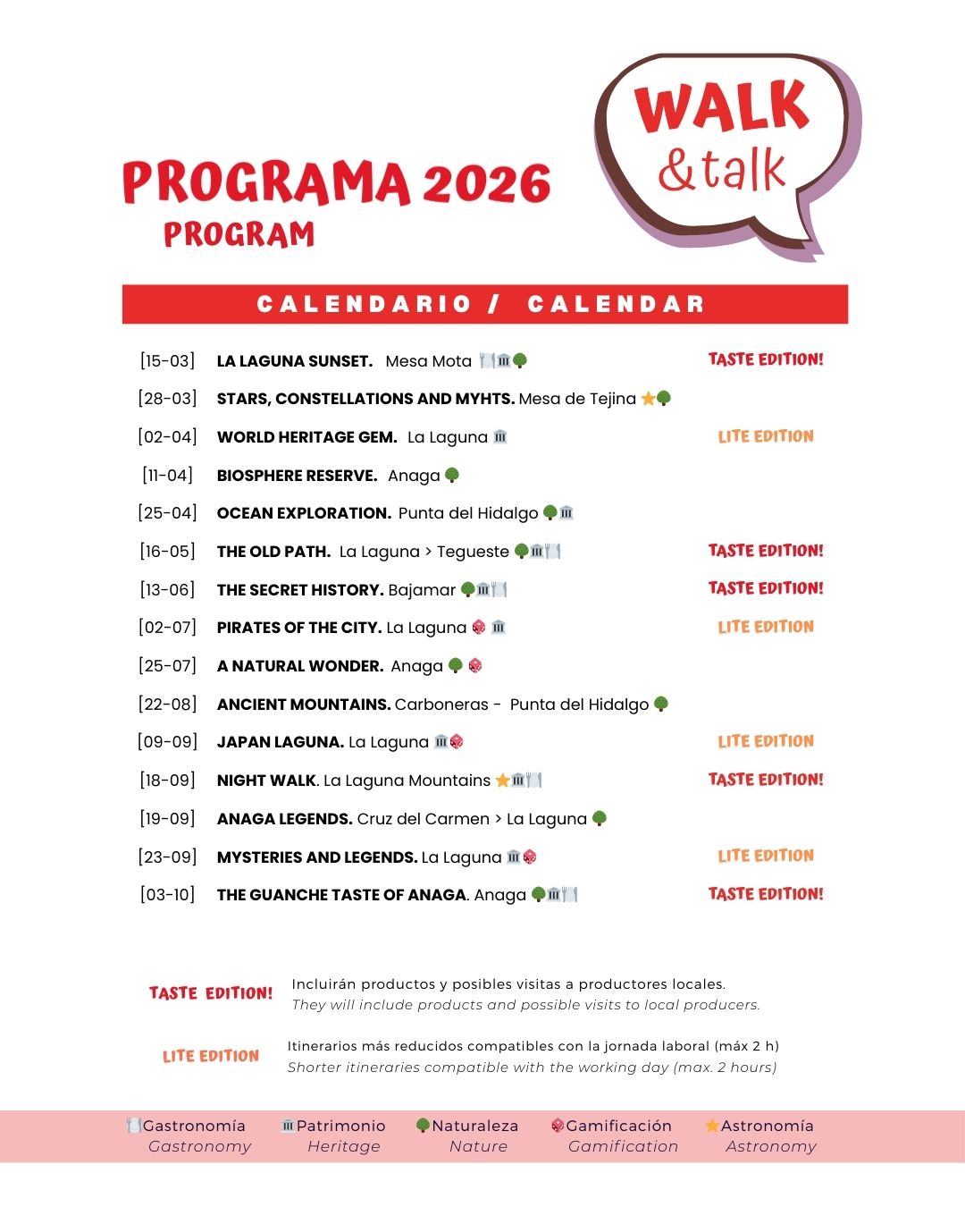 Les damos la bienvenida una nueva edición de “Walk&Talk: conoce gente nueva y practica idiomas mientras caminas. Un programa de actividades posible gracias a  la Concejalía de Turismo del Ayuntamiento de La Laguna.